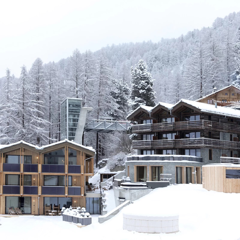 The Cervo Mountain Resort is a ski-in/ski-out hotel nestled within the mountains, close to ski slopes, hiking trails, and cable cars. The hotel comprises 7 chalets with contemporary Alpine décor. Each chalet boasts its own wellness center equipped with two different types of sauna, a hot tub, a lounge area…